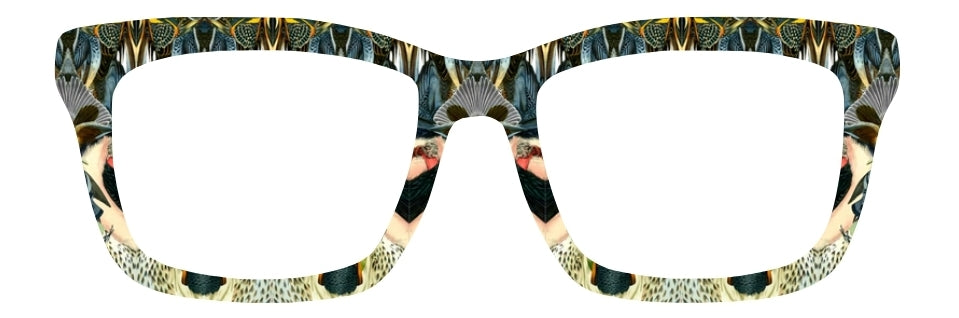 **Topper Bases: Designs are printed on a white base by default. If a translucent base is chosen, please keep in mind that the design will be more subtle and transparent. The white base will have a more vivid and crisp look. The clear option is not recommended for dark frames. White & light colored designs will show clear or light colored with the translucent option.