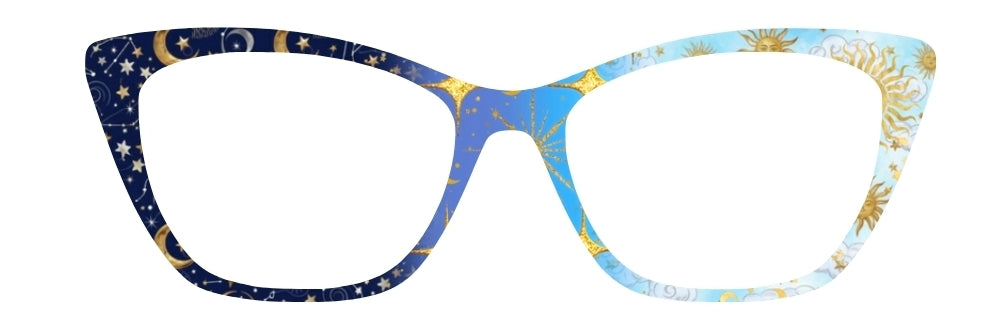 **Topper Bases: Designs are printed on a white base by default. If a translucent base is chosen, please keep in mind that the design will be more subtle and transparent. The white base will have a more vivid and crisp look. The clear option is not recommended for dark frames. White & light colored designs will show clear or light colored with the translucent option.