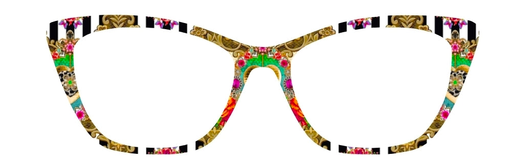 **Topper Bases: Designs are printed on a white base by default. If a translucent base is chosen, please keep in mind that the design will be more subtle and transparent. The white base will have a more vivid and crisp look. The clear option is not recommended for dark frames. White & light colored designs will show clear or light colored with the translucent option.