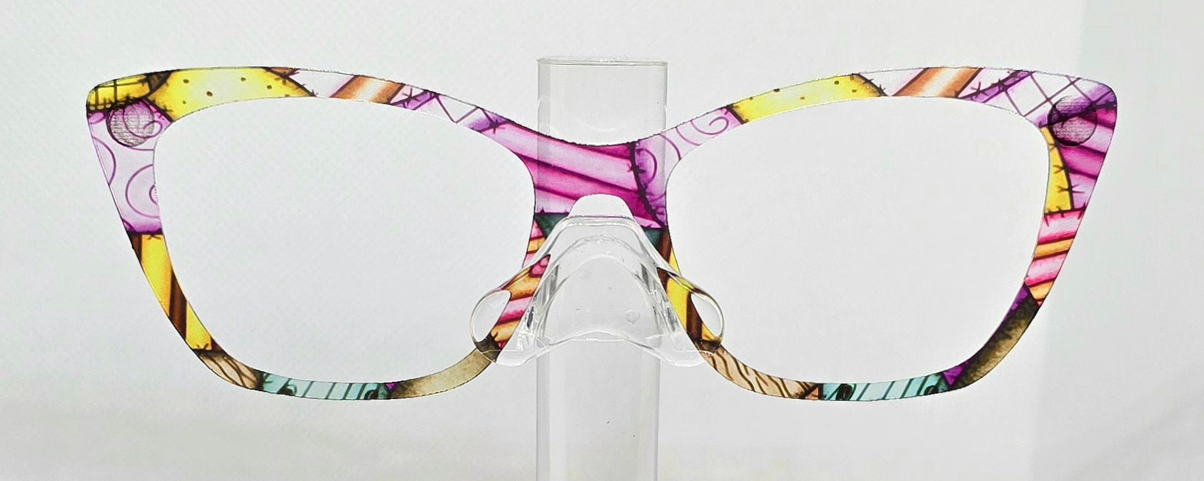 **Topper Bases: Designs are printed on a white base by default. If a translucent base is chosen, please keep in mind that the design will be more subtle and transparent. The white base will have a more vivid and crisp look. The clear option is not recommended for dark frames. White & light colored designs will show clear or light colored with the translucent option.