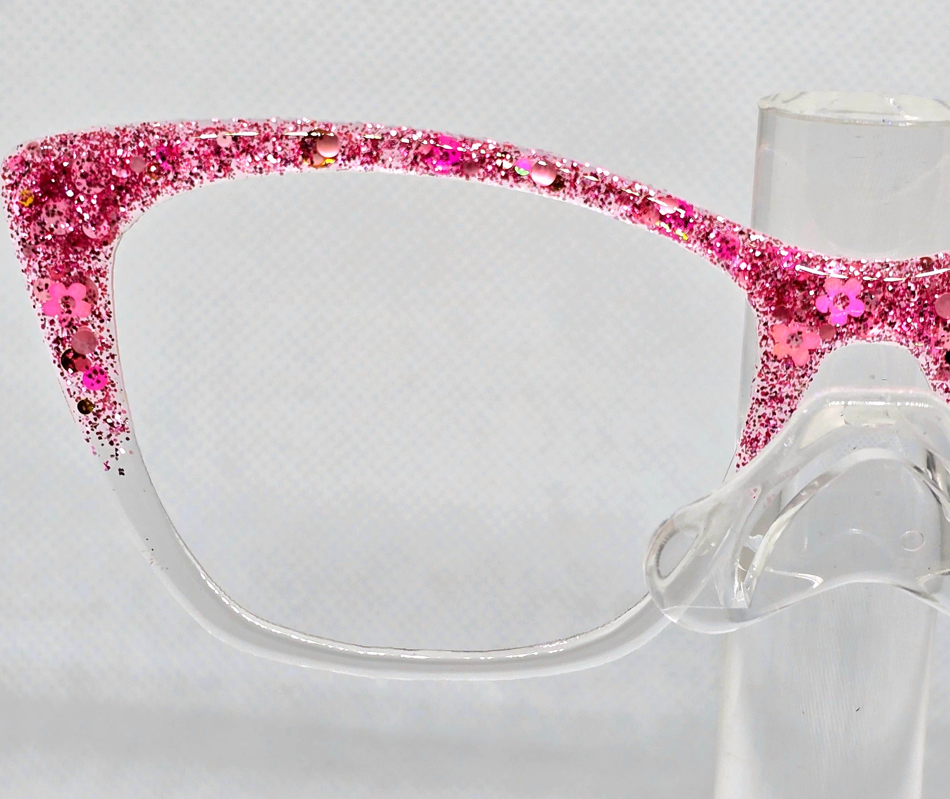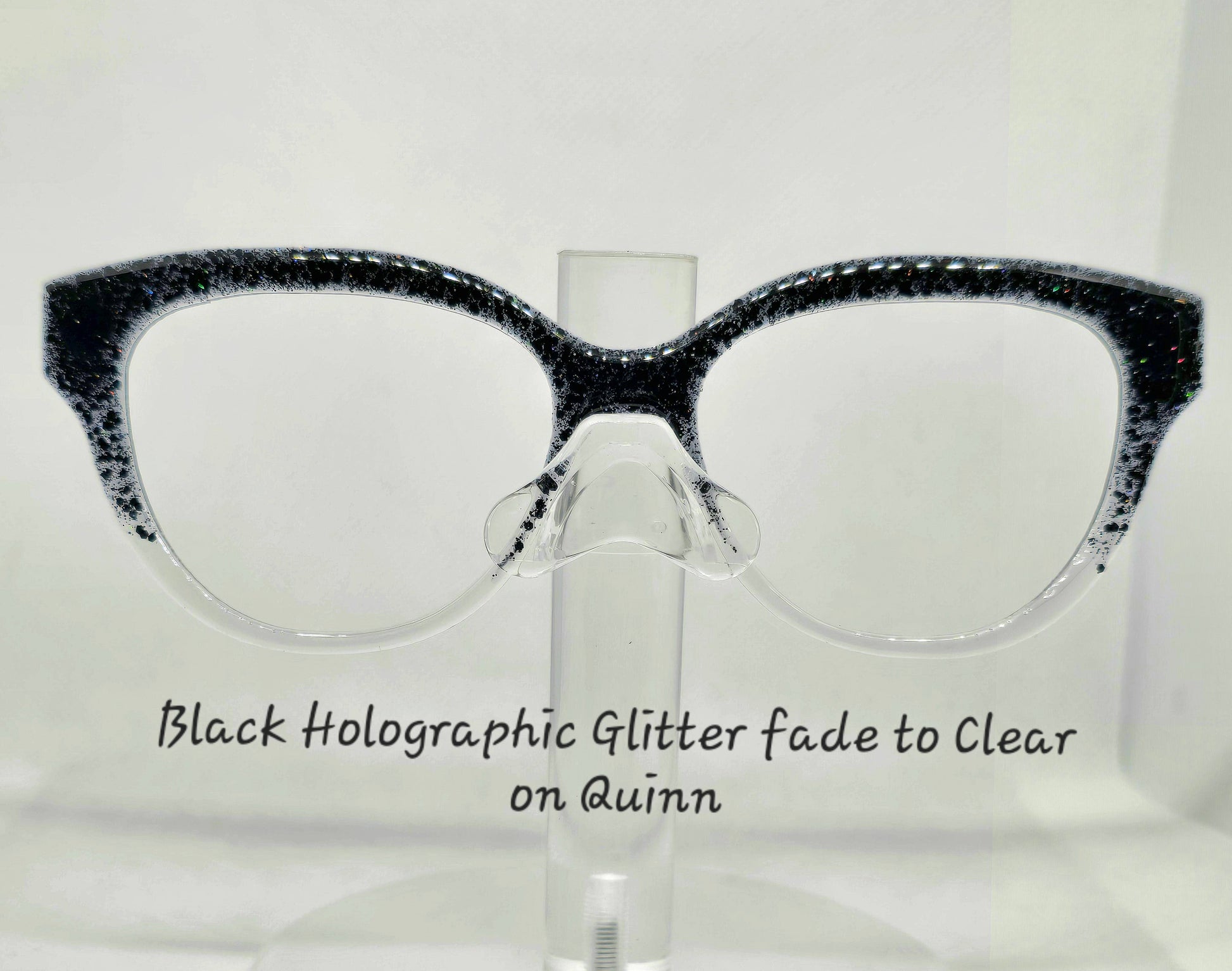 **Topper Bases: Designs are printed on a white base by default. If a translucent base is chosen, please keep in mind that the design will be more subtle and transparent. The white base will have a more vivid and crisp look. The clear option is not recommended for dark frames. White & light colored designs will show clear or light colored with the translucent option.