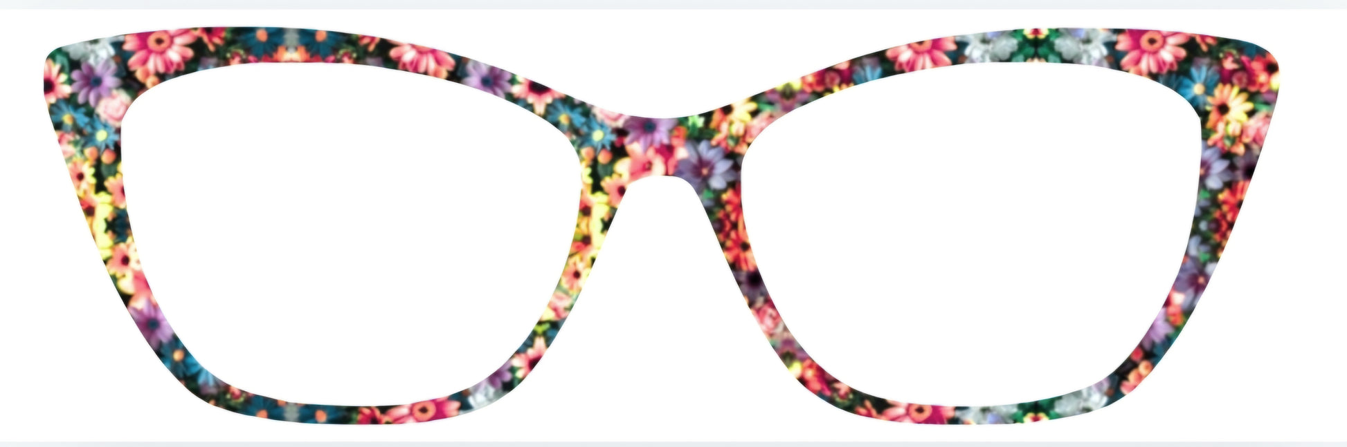 **Topper Bases: Designs are printed on a white base by default. If a translucent base is chosen, please keep in mind that the design will be more subtle and transparent. The white base will have a more vivid and crisp look. The clear option is not recommended for dark frames. White & light colored designs will show clear or light colored with the translucent option.